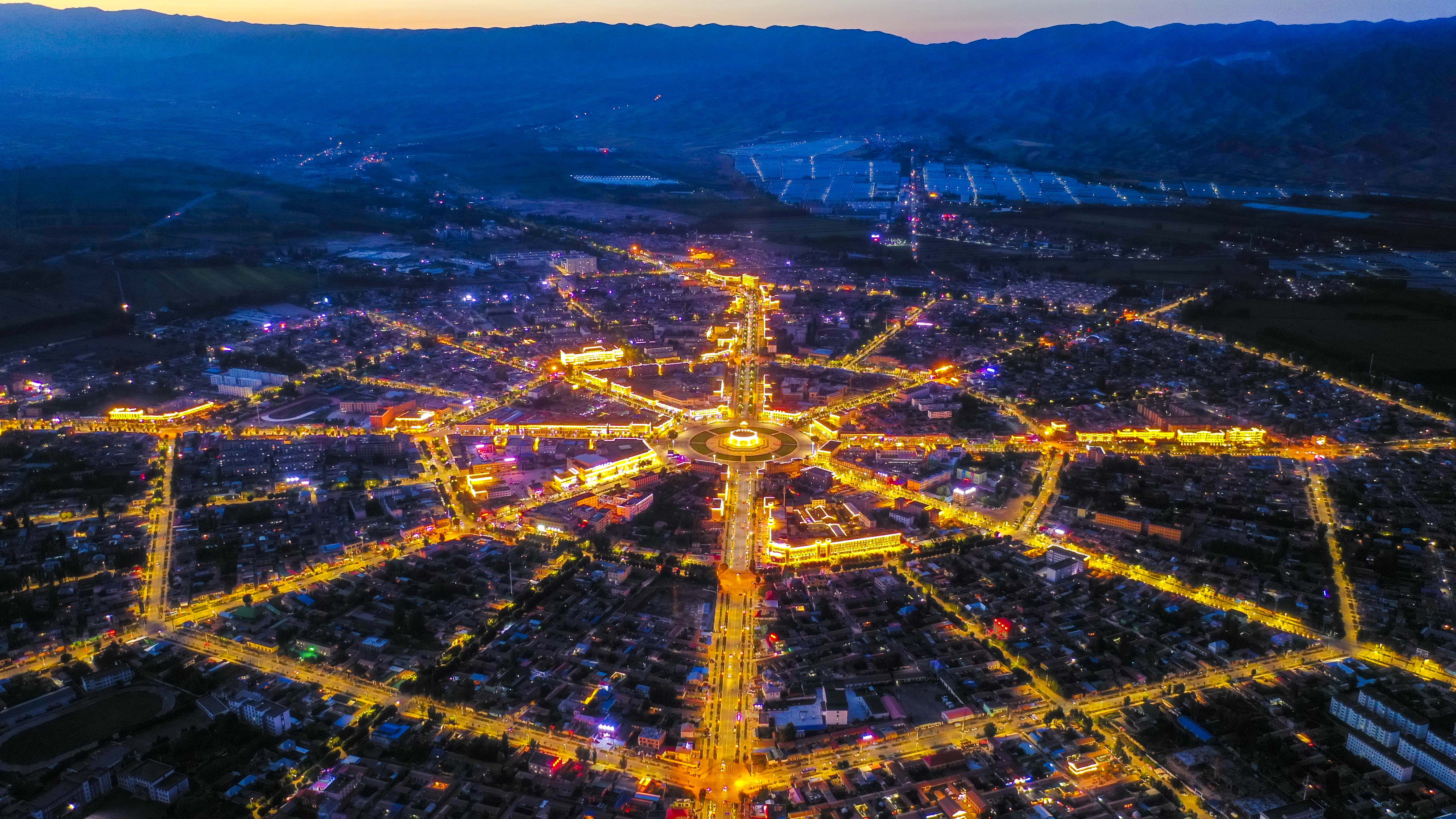 A night view of Tekes County in northwest China's Xinjiang Uygur Autonomous Region. (Xinhua/Hu Huhu)