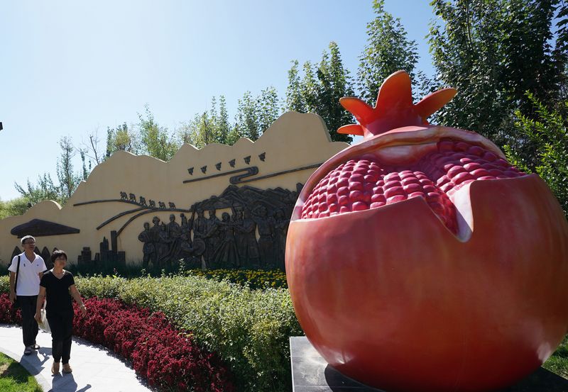Visitors tour the Xinjiang Garden of the Beijing International Horticultural Exhibition in Beijing, capital of China. (Xinhua/Ju Huanzong)