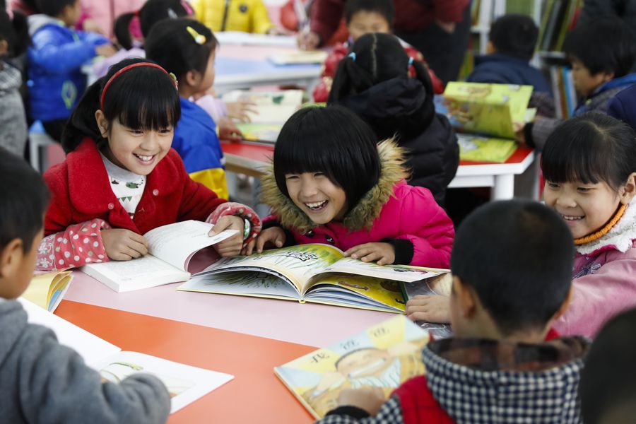 Students read books during a reading lesson at Quyang Primary School in Yudu County, east China's Jiangxi Province, Feb. 23, 2017. (Xinhua/Shen Bohan)