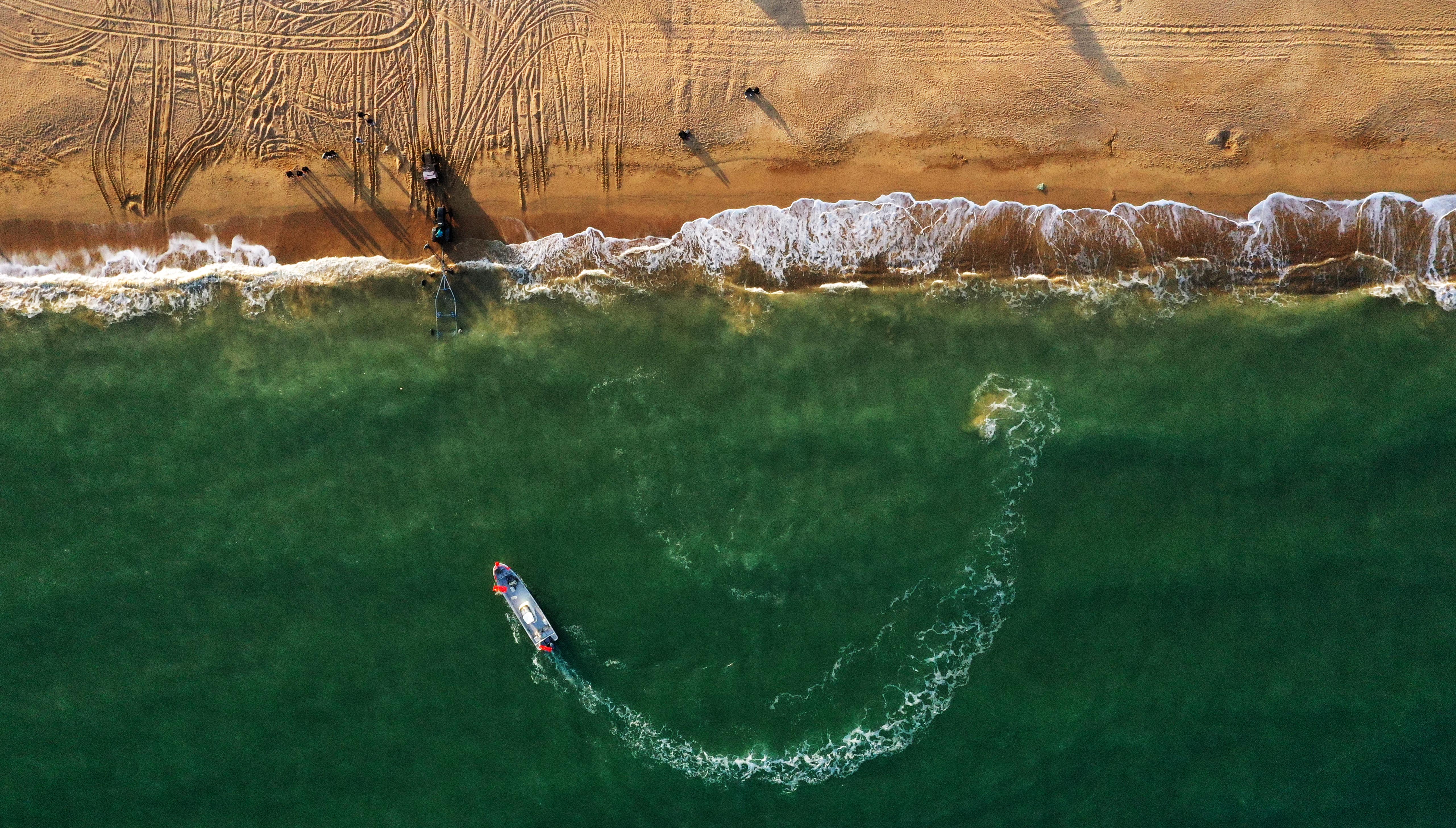 Aerial photo taken on Oct. 26, 2019 shows a yacht sailing on the sea of a resort area in Rizhao, east China's Shandong Province. (Xinhua/Wang Kai)