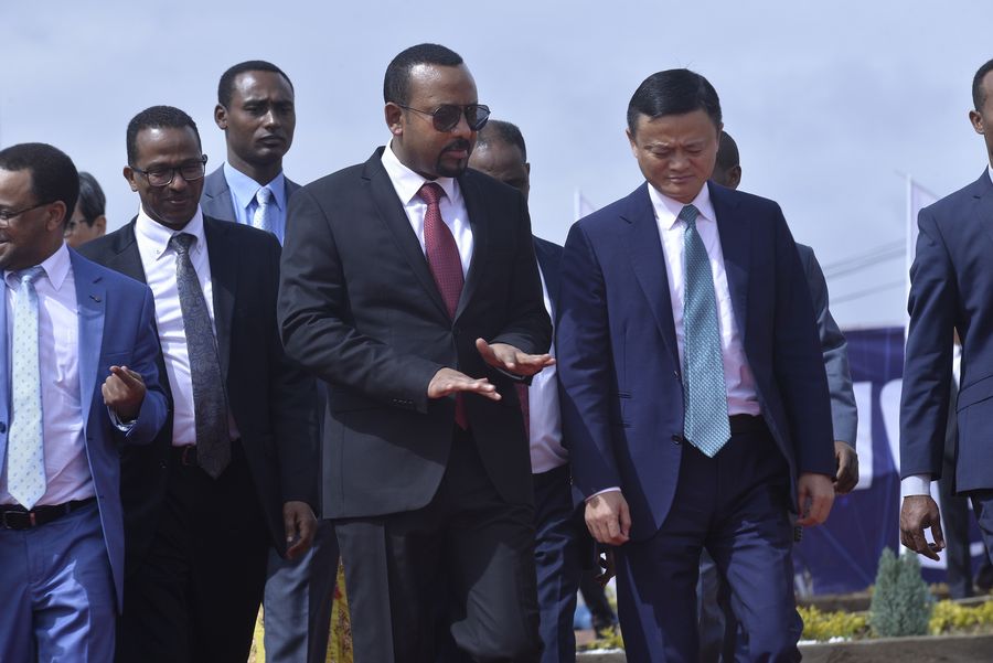 Ethiopian Prime Minister Abiy Ahmed (C) is seen with Alibaba Group Founder Jack Ma (R) in Addis Ababa, capital of Ethiopia, Nov. 25, 2019. (Xinhua/Michael Tewelde)