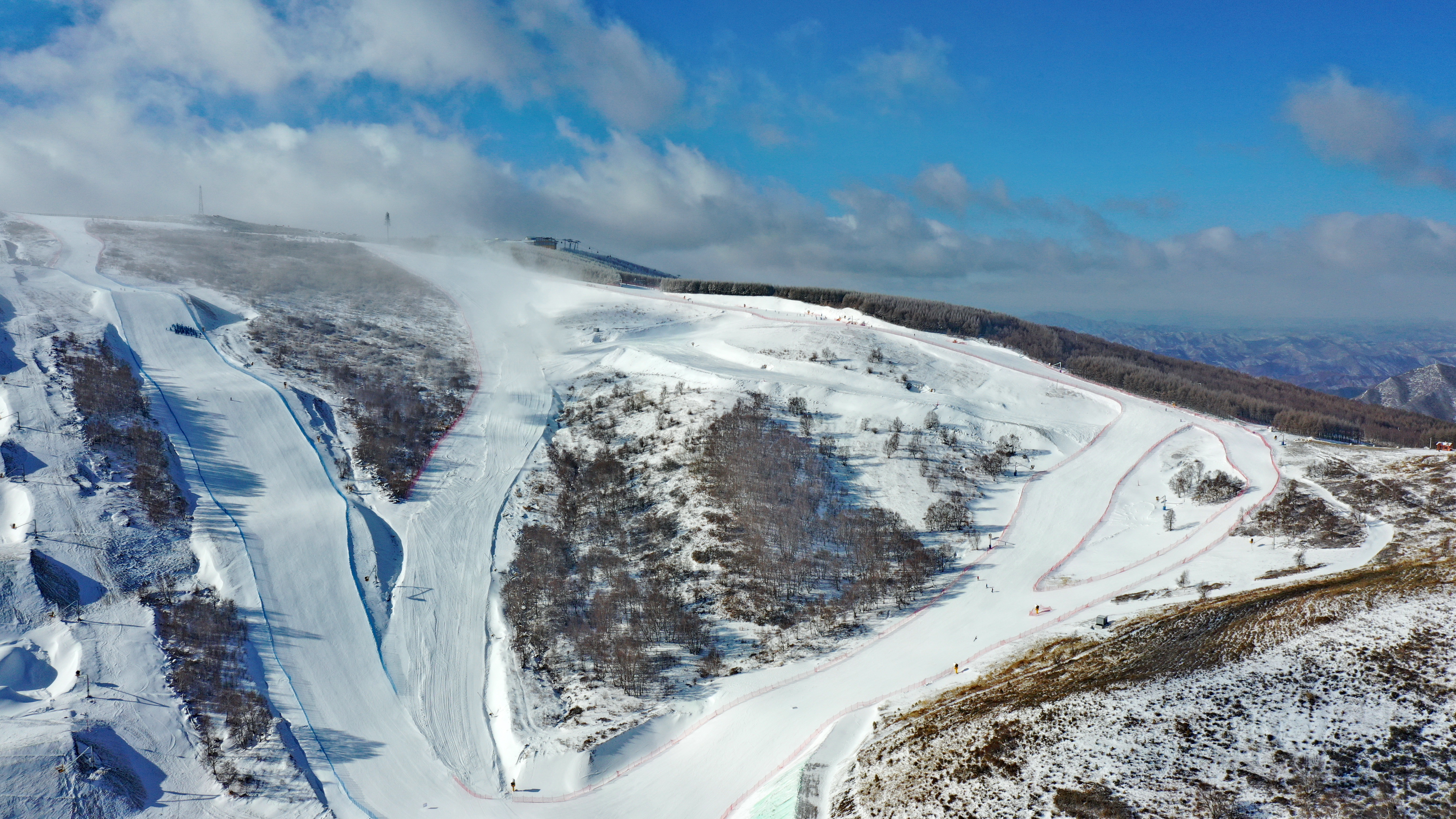 An aerial photo taken with a drone on Dec. 11, 2019 shows Genting Snow Park in Chongli, north China's Hebei Province. (Xinhua/Yang Shiyao)