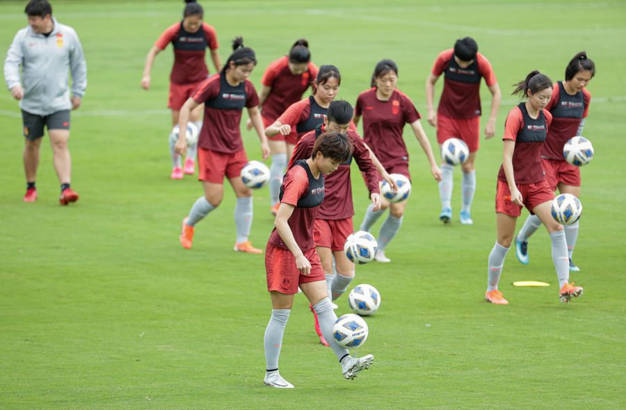 Players of Team China attend a training session for the upcoming Olympic women's football qualifying Group B matches in Sydney, Australia, Feb. 6, 2020. (Xinhua/Bai Xuefei)