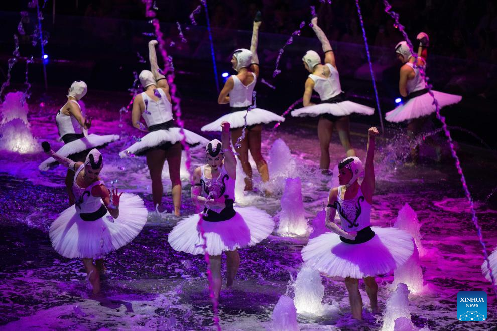 House of Dancing Water, an aquatic stage production featuring aerial acrobatics and theater technology, is staged in Macao, south China, May 7, 2025.(Xinhua/Cheong Kam Ka)