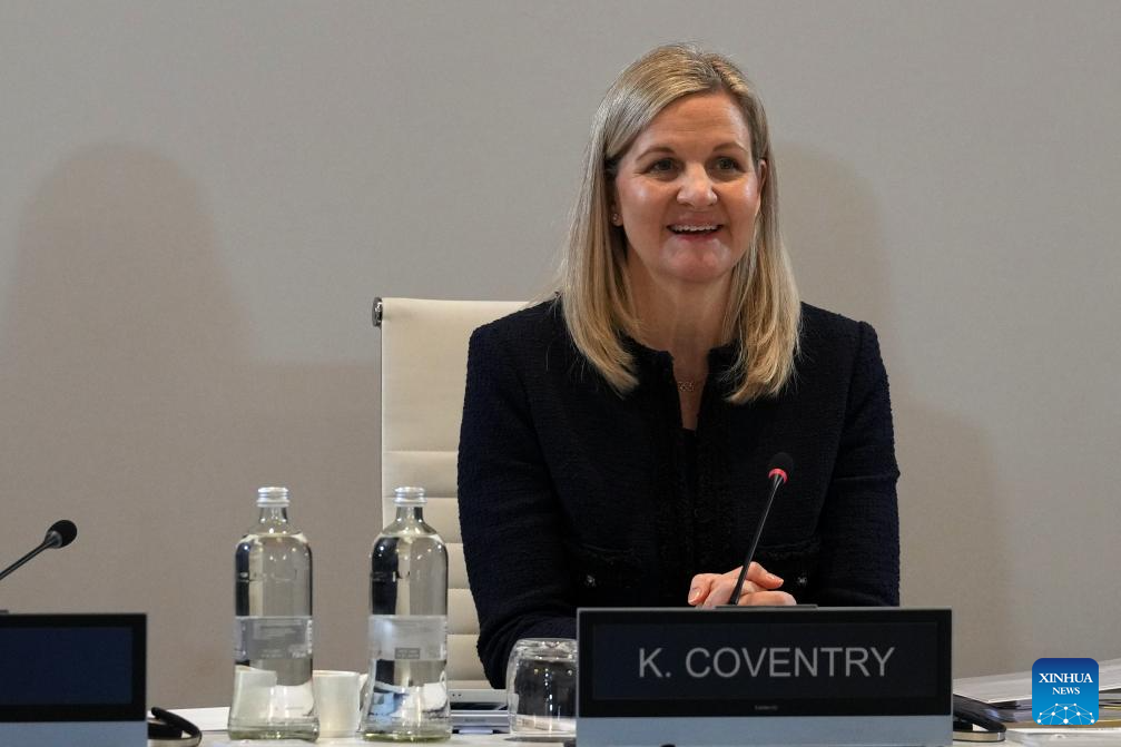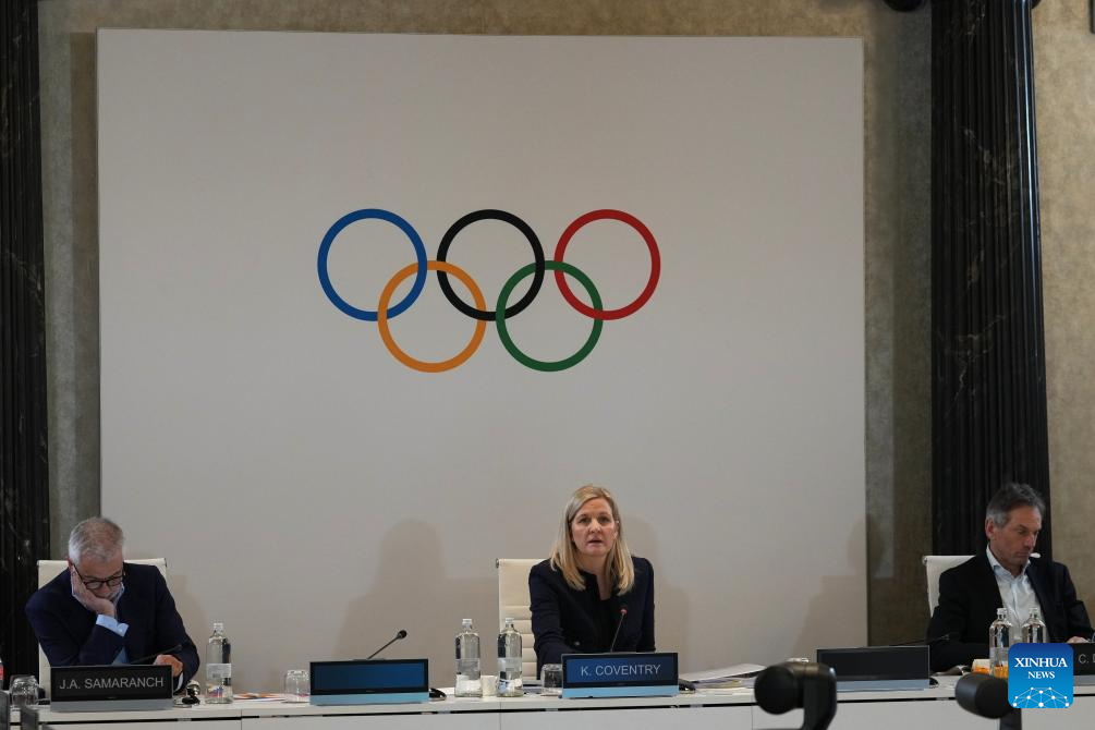 Kirsty Coventry, president of International Olympic Committee (IOC), attends the IOC Executive Board meeting before the 2026 Winter Olympics in Milan, Italy, Jan. 31, 2026. (Antonio Calanni/Pool via Xinhua)