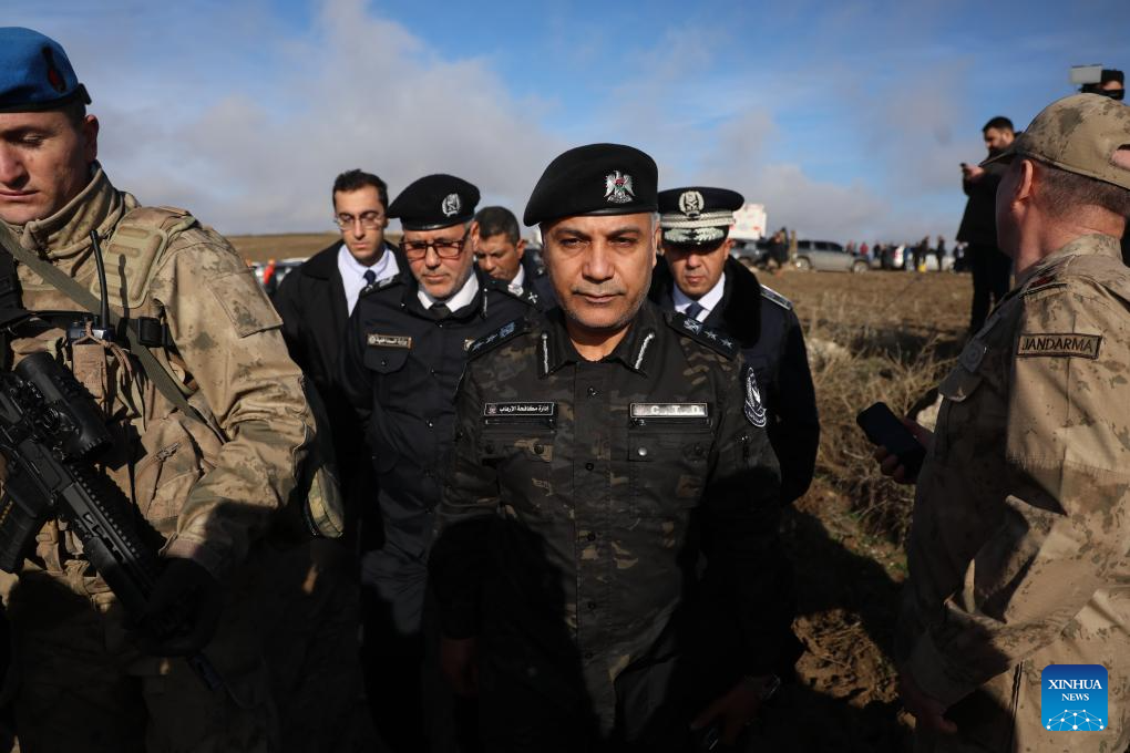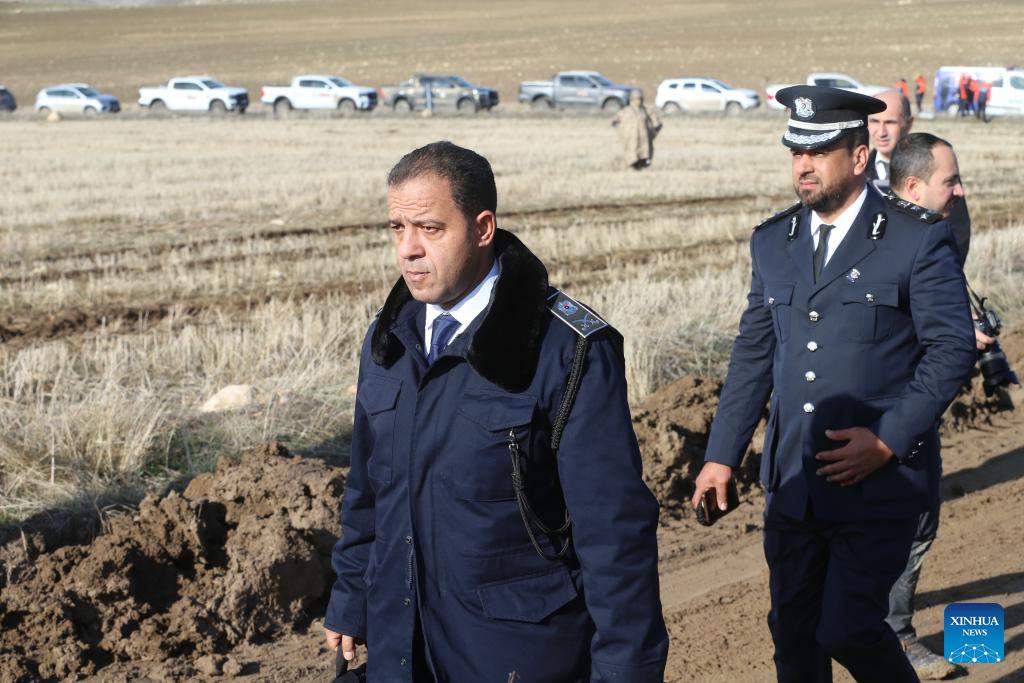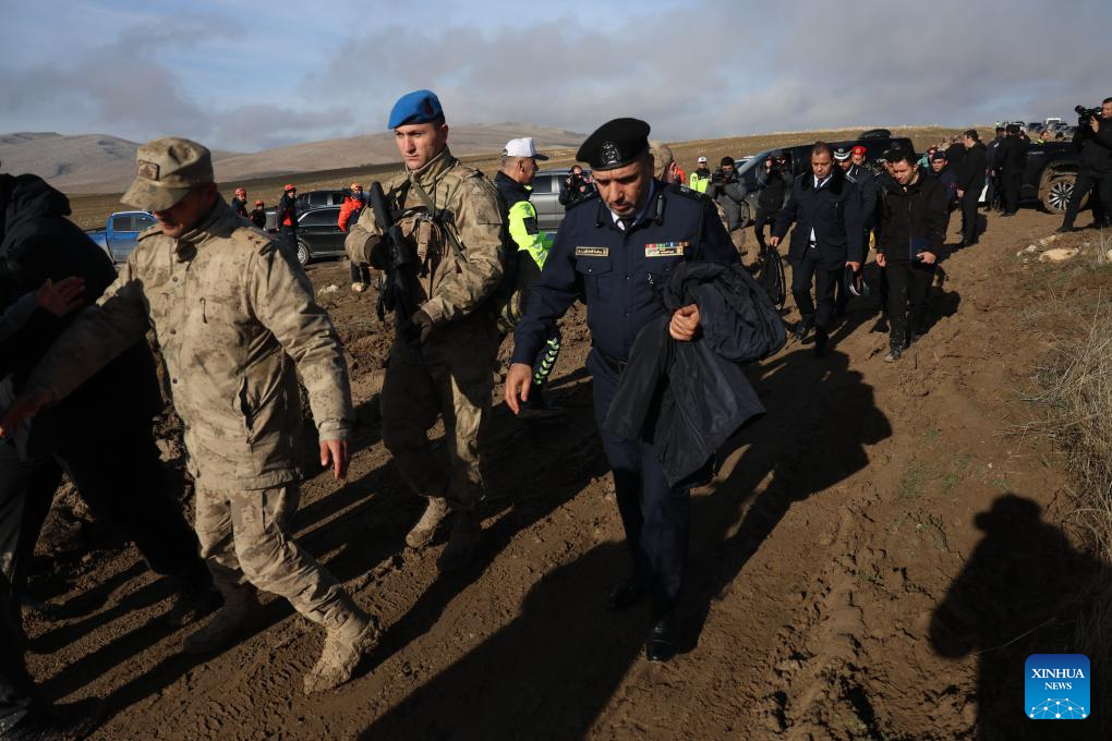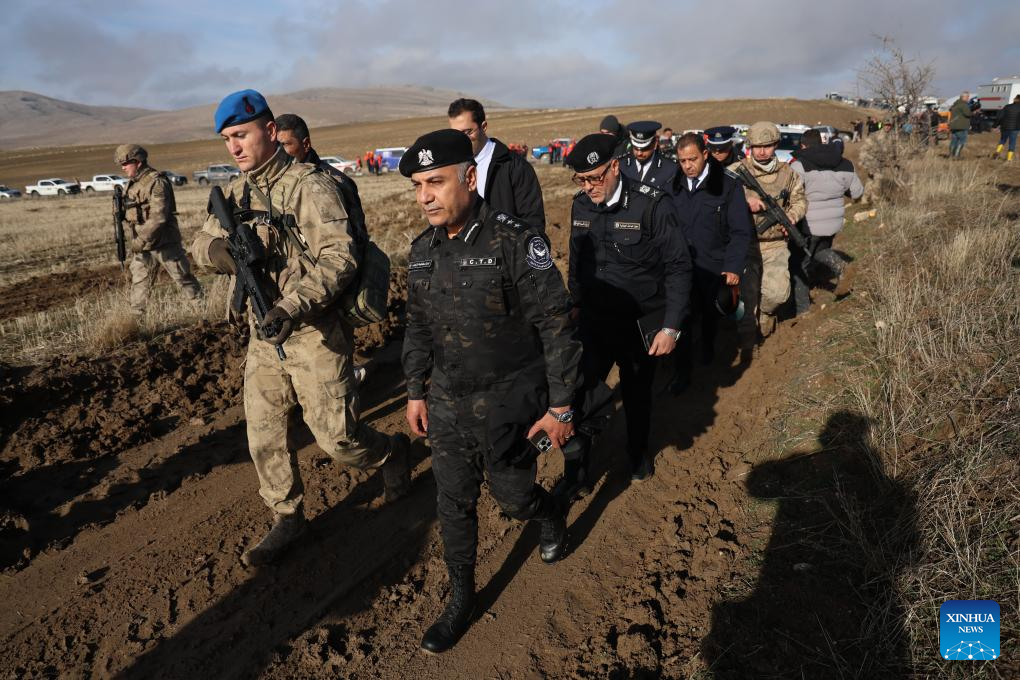 The investigations are intensified at the plane crash site near Kesikkavak village in Ankara's Haymana district, Türkiye, on Dec. 24, 2025. Libya's army chief of staff, Mohammed al-Haddad, and four other military officials were killed when their business jet crashed south of Ankara on Tuesday evening, Libyan and Turkish authorities said. Turkish gendarmerie units located the wreckage of the Falcon 50 jet near Kesikkavak village in Ankara's Haymana district, Interior Minister Ali Yerlikaya said. (Mustafa Kaya/Handout via Xinhua)