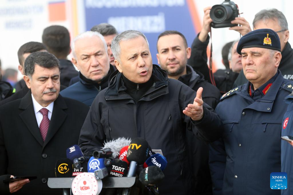 Turkish Interior Minister Ali Yerlikaya briefs the media at the plane crash site near Kesikkavak village in Ankara's Haymana district, Türkiye, on Dec. 24, 2025. Libya's army chief of staff, Mohammed al-Haddad, and four other military officials were killed when their business jet crashed south of Ankara on Tuesday evening, Libyan and Turkish authorities said.