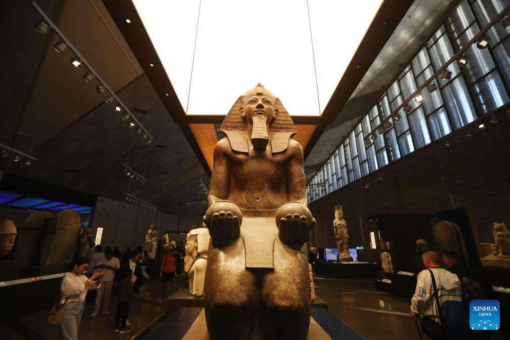 Artifacts are displayed at the Grand Egyptian Museum in the Greater Cairo, Egypt, Dec. 23, 2025. The Grand Egyptian Museum opened its doors to the public on Nov. 4, establishing itself as one of the world's largest displays of ancient relics, and a high-tech fort dedicated to heritage conservation. (Xinhua/Ahmed Gomaa)