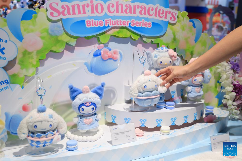 This photo shows Sanrio-themed products at Guangzhou Moetch Cultural & Creative Co., Ltd. in Guangzhou, south China's Guangdong Province, Oct. 28, 2025.