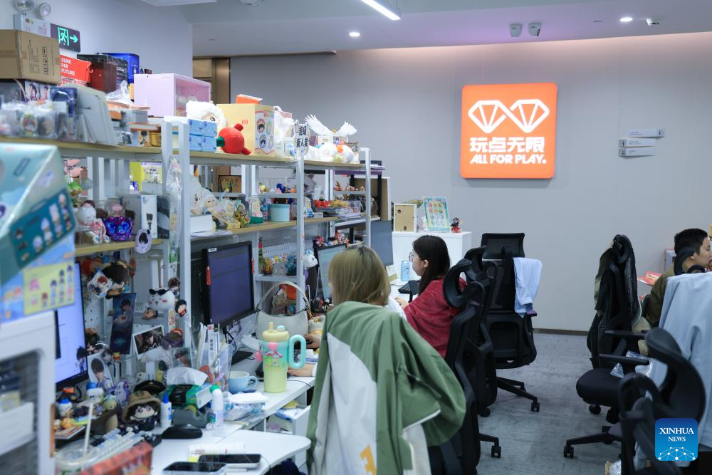Staff members work at the headquarters of All For Play, a trendy toy brand, in Guangzhou, south China's Guangdong Province, Oct. 28, 2025.