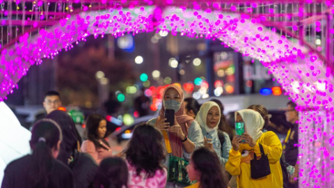 People visit Ala-Too Square during New Year event in Bishkek, Kyrgyzstan