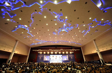 Participants attend opening plenary of Summer Davos Participants attend the opening plenary of the Annual Meeting of the New Champions 2009, or the Summer Davos, in Dalian.