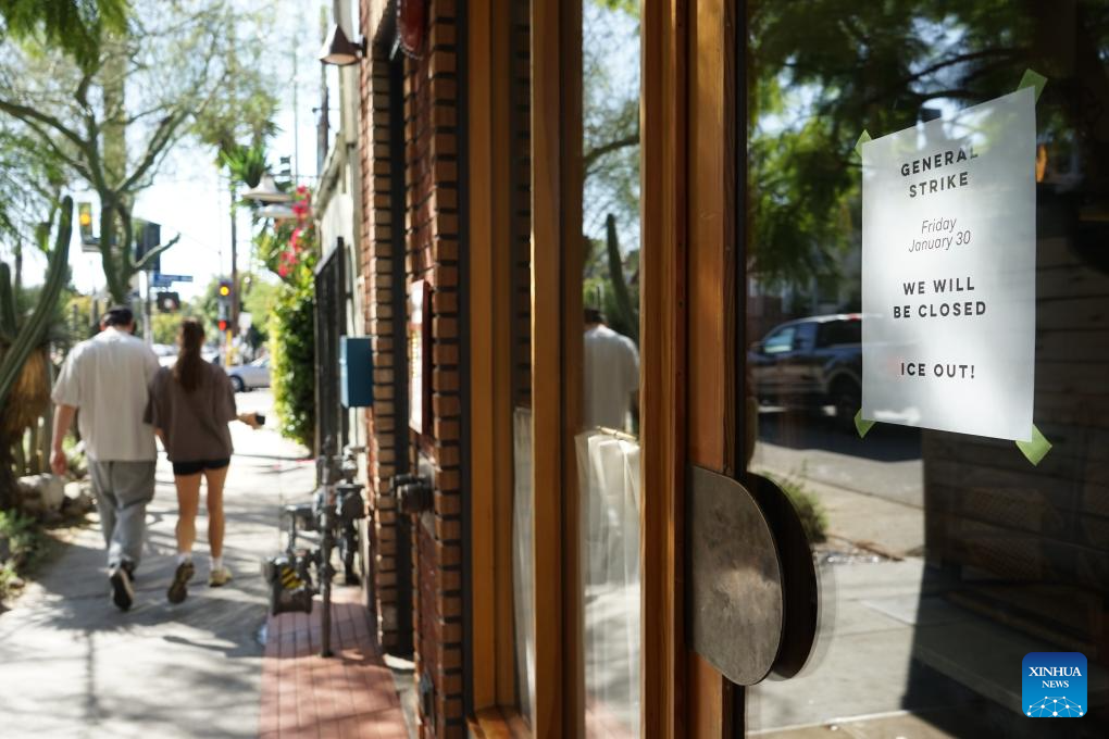 LOS ANGELES, Jan. 31 (Xinhua) -- Protesters gathered across the United States on Friday for a nationwide general strike against federal immigration enforcement operations and the recent fatal shootings by immigration agents.