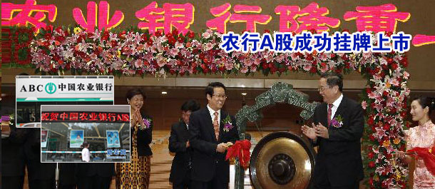 2010年04月14日:中國農(nóng)業(yè)銀行表示,已確定9家投資銀行協(xié)助農(nóng)行完成A股和H股發(fā)行上市工作。
