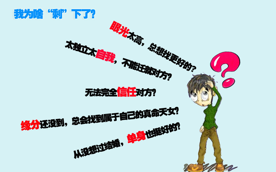 @漢森:多少80后的剩男剩女們還沒解決個(gè)人問題,90后已經(jīng)開始離婚了。 剩男們,你們可長點(diǎn)心吧!