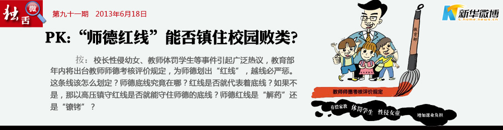 師德在哪里? 一個(gè)國(guó)家的教師道德需要主管部門(mén)來(lái)設(shè)紅線,這個(gè)國(guó)家的師德還有嗎?人為劃定的“紅線”無(wú)疑是師德蛻化的外在表征,“紅線”劃多了,且對(duì)踩踏“紅線”者不能形成有效震懾,“底線”就會(huì)逐步棄守。