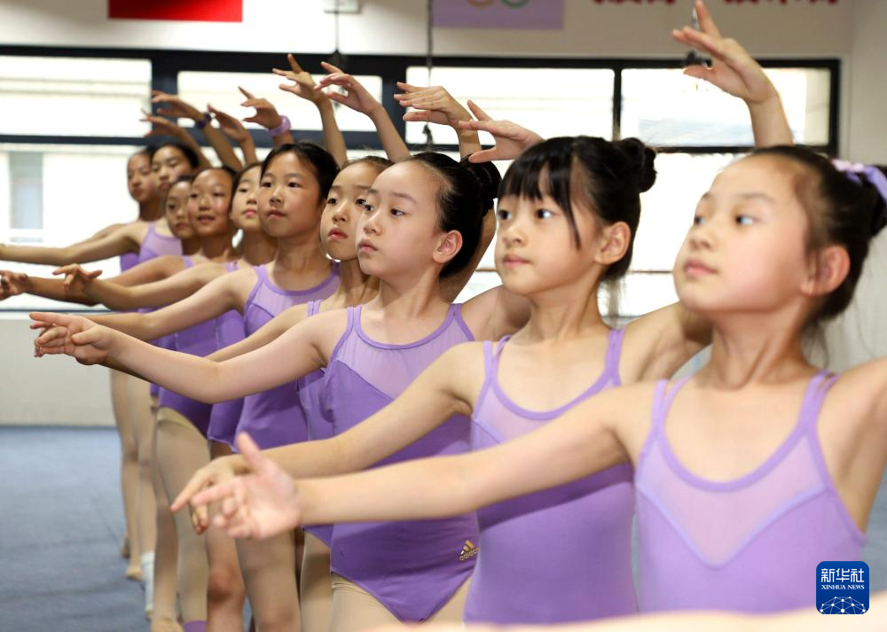 学生在河南省南阳市一家体育艺术中心学跳舞。