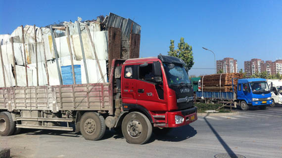 項(xiàng)目周圍基建設(shè)施雖然還算可以,路面較為寬廣,但附近的交通安全問(wèn)題不容忽視。記者探訪時(shí)看到,項(xiàng)目南側(cè)大門外的道路上大卡車、大貨車橫行,而道路距離最近的樓座不到10米。
