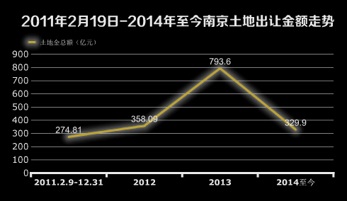 南京土地市場真正開始發(fā)力始于2012年,該年共成交75幅地塊,實(shí)際出讓面積為392.65萬平方米,成交總價(jià)為358.09億元,相比2011年全年成交金額(345.19億元)總價(jià)上漲3.7%。 而2013年年初“國五條”的出臺更是為全年土地市場火熱埋下伏筆。據(jù)新華網(wǎng)統(tǒng)計(jì),2013年南京土地市場創(chuàng)下“招拍掛”以來土地成交金額的新高,共累計(jì)成交土地414.5萬平方米,總成交金額793.6億元。 [詳細(xì)]