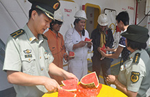在夏日為船員送上消暑水果 熱心服務群眾 對受傷船員進行人證對照