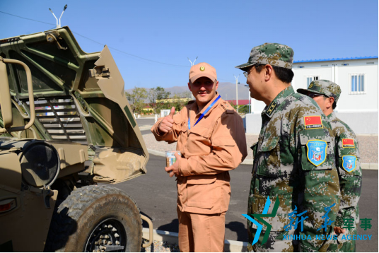 俄羅斯軍官參觀中國(guó)野戰(zhàn)救護(hù)車(chē)。