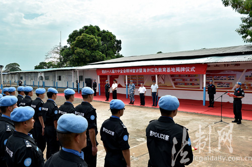 ????揭牌儀式上,中國第四支駐利比里亞維和警察防暴隊政委徐曉偉宣讀了公安部邊防管理局黨委書記、政委牟玉昌專門發(fā)來的賀電,向防暴隊成立海外紅色教育基地表示熱烈祝賀,充分肯定了防暴隊取得的成績,并要求武裝頭腦、指導(dǎo)實踐、推動工作,牢固樹立“四個意識”,嚴(yán)肅黨內(nèi)政治生活,以更加出色的成績和過硬作風(fēng)為全國邊防官兵作好表率。