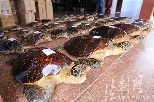 廣西防城港邊防查獲38只國(guó)家二級(jí)保護(hù)動(dòng)物玳瑁標(biāo)本
