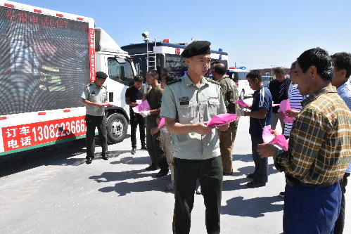 邊防官兵向漁民發(fā)放宣傳單宣講法律法規(guī)