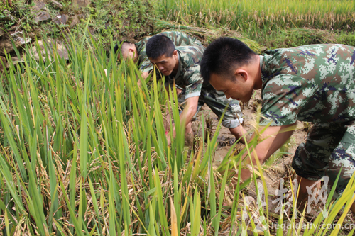圖為邊防官兵助轄區(qū)群眾收獲稻谷