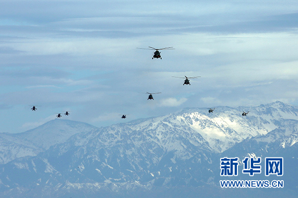 2018年5月25日,新疆軍區(qū)某陸航旅運輸直升機(jī)一營在高海拔地區(qū)開展協(xié)同訓(xùn)練。 新華社發(fā)(吳世科 攝)