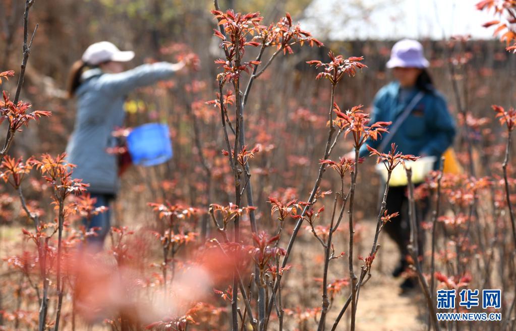4月6日,農(nóng)民在石家莊市鹿泉區(qū)白鹿泉鄉(xiāng)谷家峪村采摘香椿。