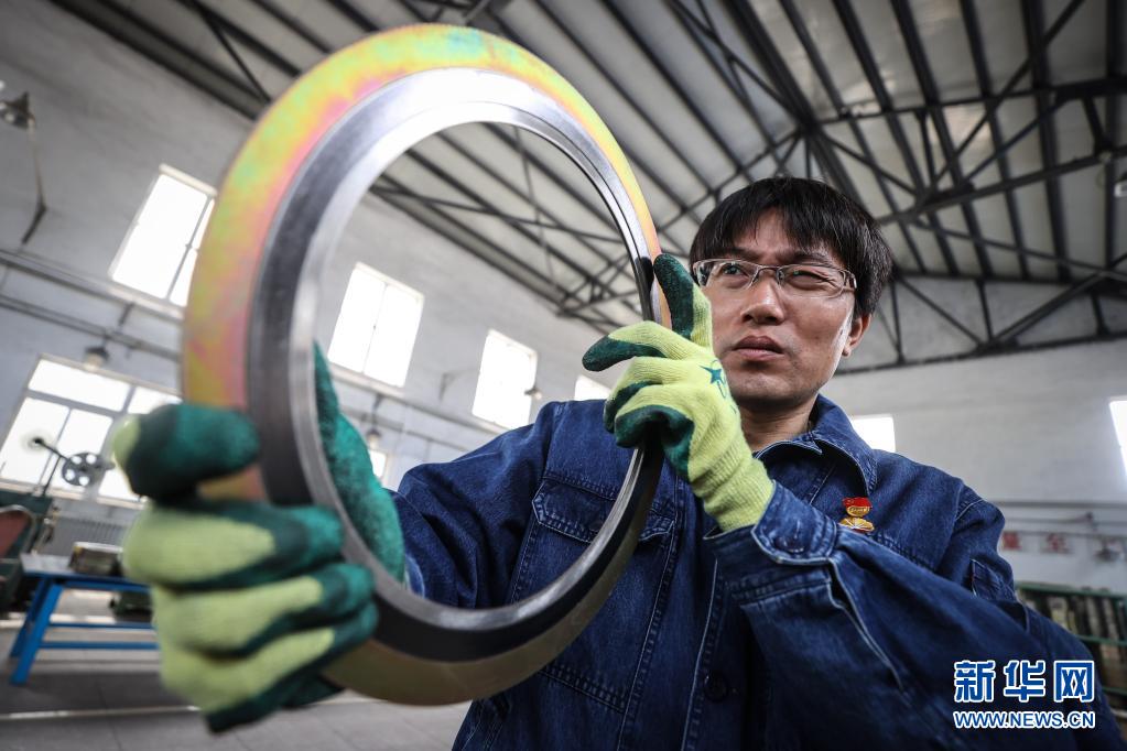 4月30日,王尚典在檢查生產(chǎn)的墊片產(chǎn)品是否合格。