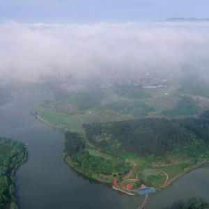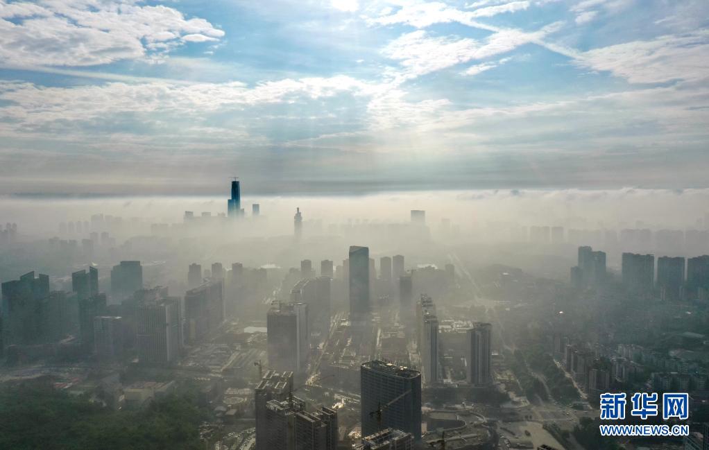 5月8日,貴陽市觀山湖區(qū)的高樓被霧氣籠罩(無人機(jī)照片)。