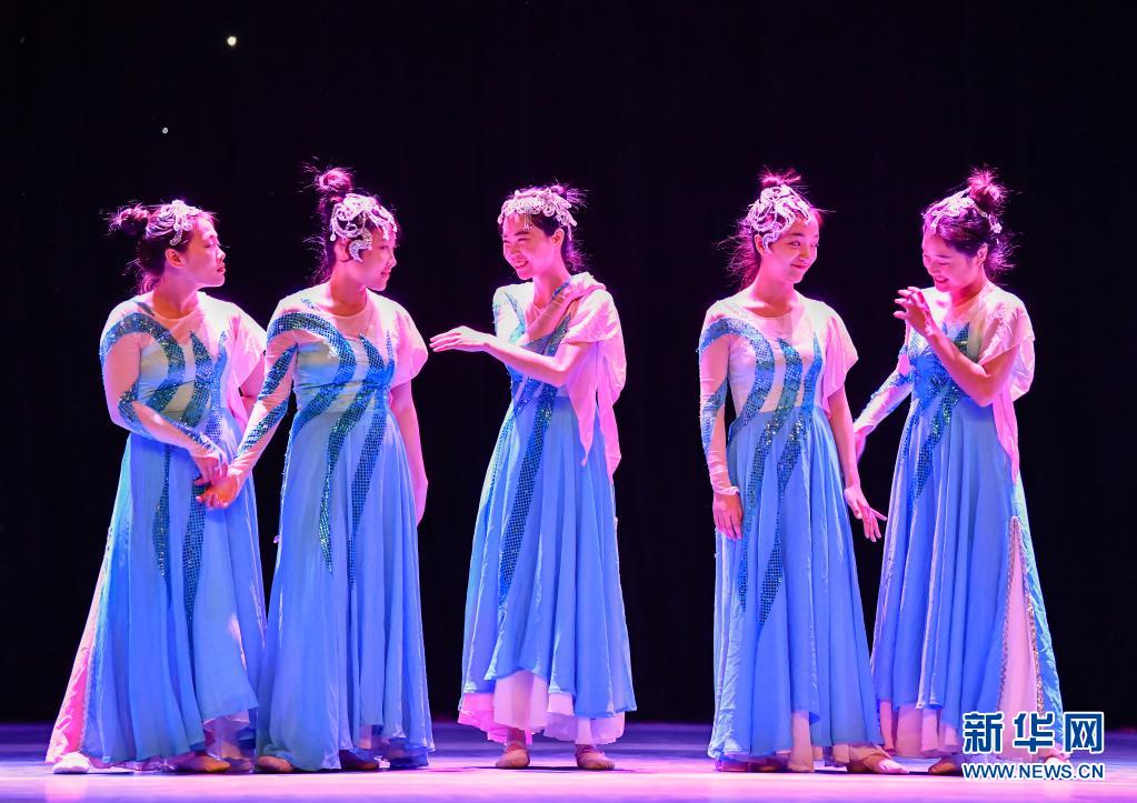 在天津理工大學的劇場里,天津理工大學聾人工學院的舞蹈隊員們在彩排間隙用手語交流(5月10日攝)。新華社發(fā)(孫凡越攝)