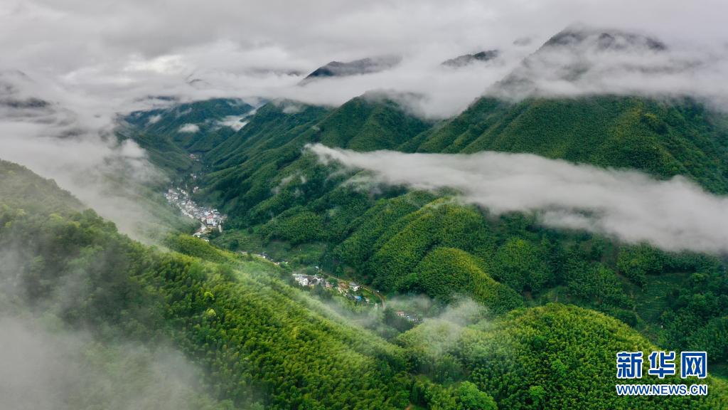 5月17日,武夷山國家公園桐木村附近群山云霧繚繞(無人機(jī)照片)。