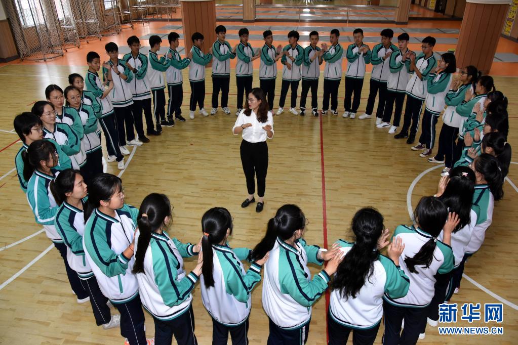 5月23日,青島通濟(jì)實(shí)驗(yàn)學(xué)校高三學(xué)生在進(jìn)行“激情節(jié)拍”游戲。