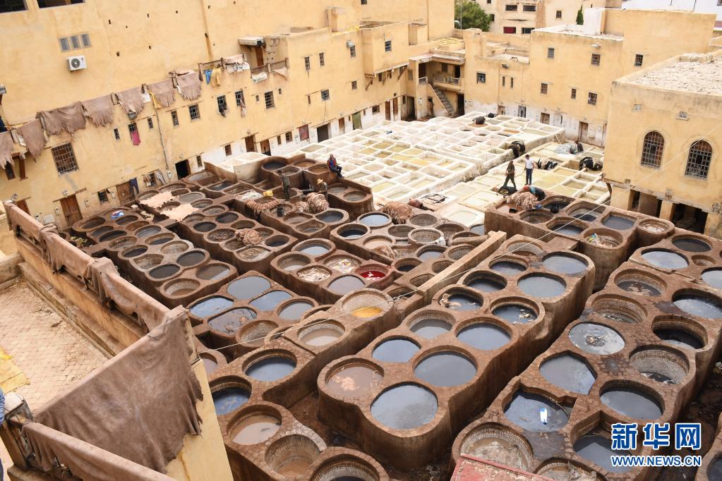 皮革業(yè)是摩洛哥的重要產(chǎn)業(yè)之一,非斯古城中的一些皮革染坊至今仍延用傳統(tǒng)工藝為皮革染色。