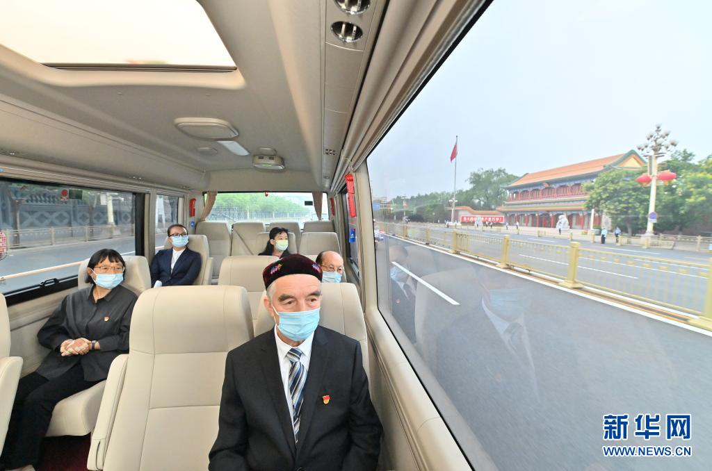 6月29日,慶祝中國共產(chǎn)黨成立100周年“七一勛章”頒授儀式在北京人民大會堂金色大廳隆重舉行。這是“七一勛章”獲得者買買提江·吾買爾(前)、張桂梅(左一)、吳天一(右一)乘坐禮賓車前往人民大會堂。新華社記者 岳月偉 攝