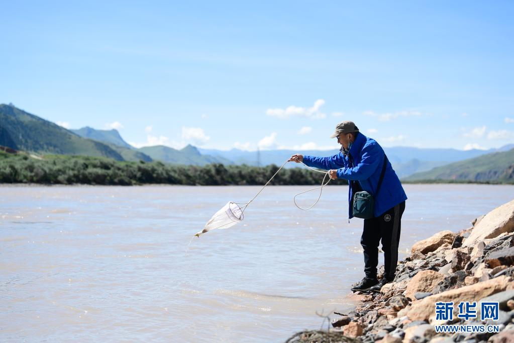 2021年長江源綜合科考的科考隊員殷大聰在采集浮游生物(7月22日攝)。