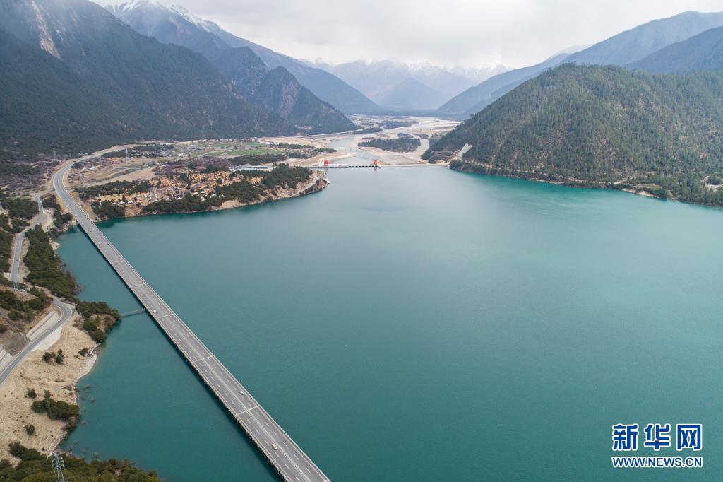 這是4月4日拍攝的拉林高等級(jí)公路(無(wú)人機(jī)照片)。