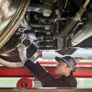 12月21日,中国铁路兰州局集团有限公司兰州车辆段银川动车运用所的工作人员对列车进行检修。他们用专业的坚守,护航每一趟列车的冬日征程,守护万千旅客的平安归途。