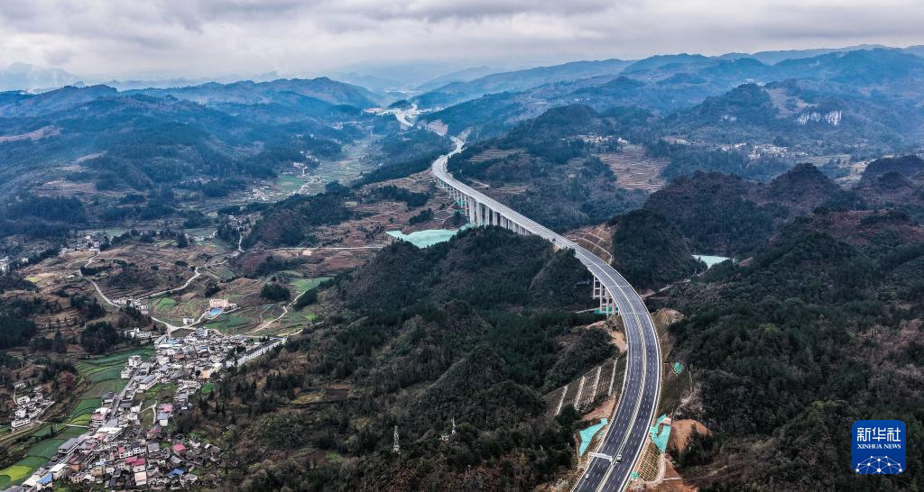 12月24日拍摄的贵平高速者密至云阳关路段(无人机照片)。