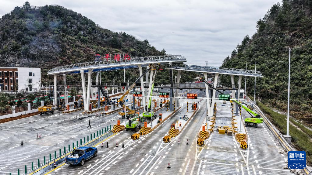 建设进入收尾阶段的平塘北收费站(12月23日摄,无人机照片)。