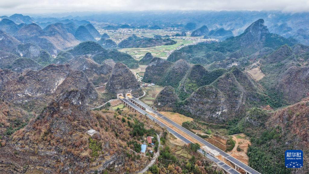 12月23日拍摄的贵平高速洛北河至沿山南路段(无人机照片)。
