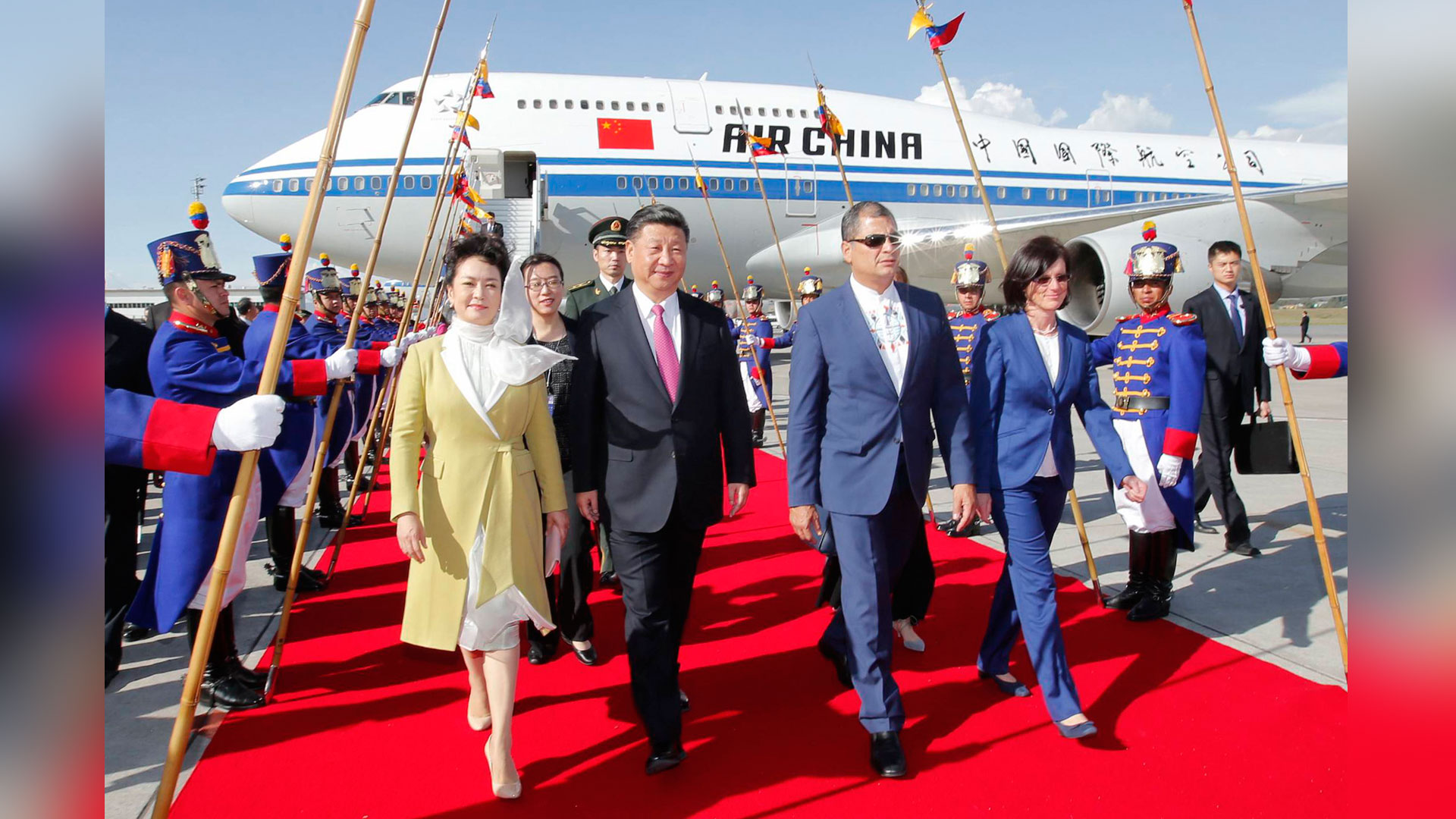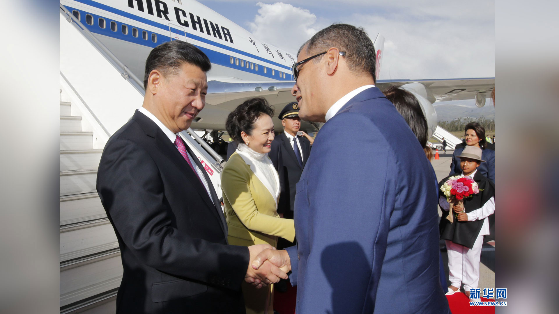 當(dāng)?shù)貢r間11月17日,國家主席習(xí)近平乘專機(jī)抵達(dá)基多,開始對厄瓜多爾共和國進(jìn)行國事訪問。厄瓜多爾總統(tǒng)科雷亞和夫人馬勒布等在機(jī)場熱情迎接習(xí)近平和夫人彭麗媛。新華社記者 鞠鵬 攝2016-11-18