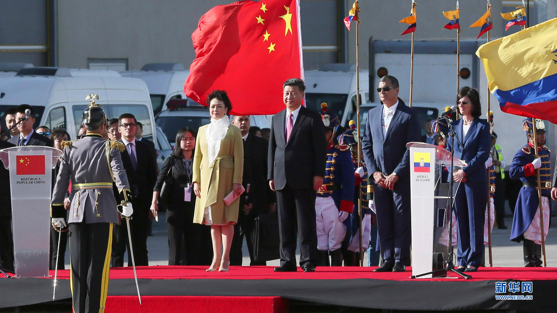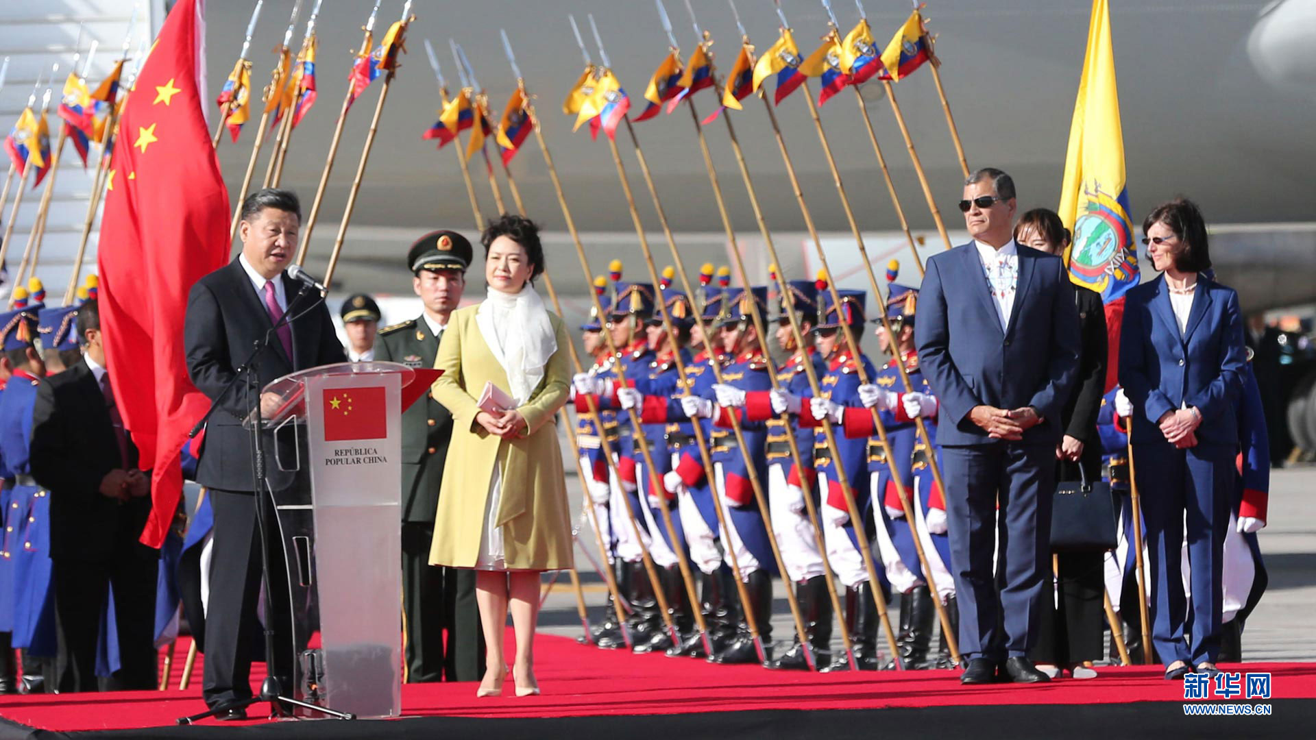 當(dāng)?shù)貢r間11月17日,國家主席習(xí)近平乘專機(jī)抵達(dá)基多,開始對厄瓜多爾共和國進(jìn)行國事訪問。這是厄瓜多爾總統(tǒng)科雷亞在機(jī)場為習(xí)近平舉行隆重歡迎儀式。新華社記者 蘭紅光 攝2016-11-18