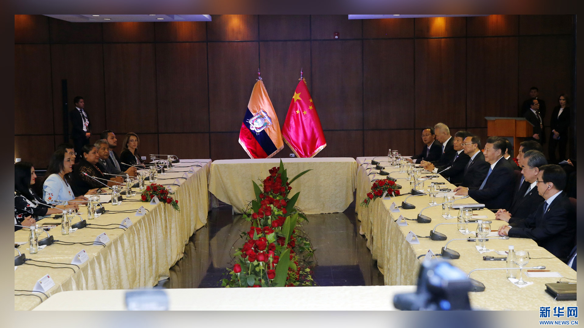 當(dāng)?shù)貢r間11月18日,國家主席習(xí)近平在基多同厄瓜多爾總統(tǒng)科雷亞共同出席中方援建的厄瓜多爾公共安全應(yīng)急指揮中心聯(lián)合實驗室揭牌儀式,喬內(nèi)醫(yī)院奠基、科卡科多-辛克雷水電站竣工發(fā)電視頻連線活動。這是習(xí)近平出席活動后致辭。新華社記者 馬占成 攝2016-11-19