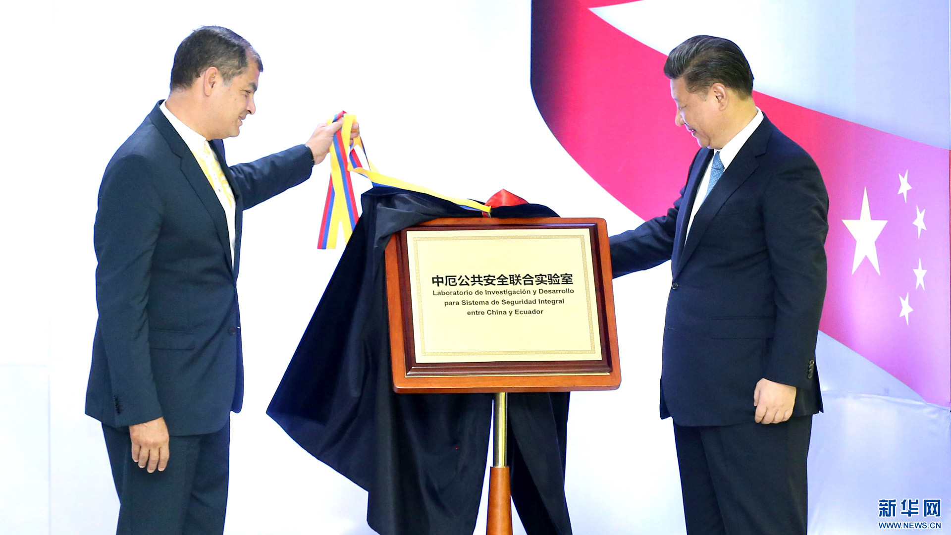 當(dāng)?shù)貢r間11月18日,國家主席習(xí)近平在基多同厄瓜多爾總統(tǒng)科雷亞共同出席中方援建的厄瓜多爾公共安全應(yīng)急指揮中心聯(lián)合實驗室揭牌儀式,喬內(nèi)醫(yī)院奠基、科卡科多-辛克雷水電站竣工發(fā)電視頻連線活動。這是兩國元首共同為厄瓜多爾公共安全應(yīng)急指揮中心聯(lián)合實驗室揭牌。新華社記者 馬占成 攝2016-11-19