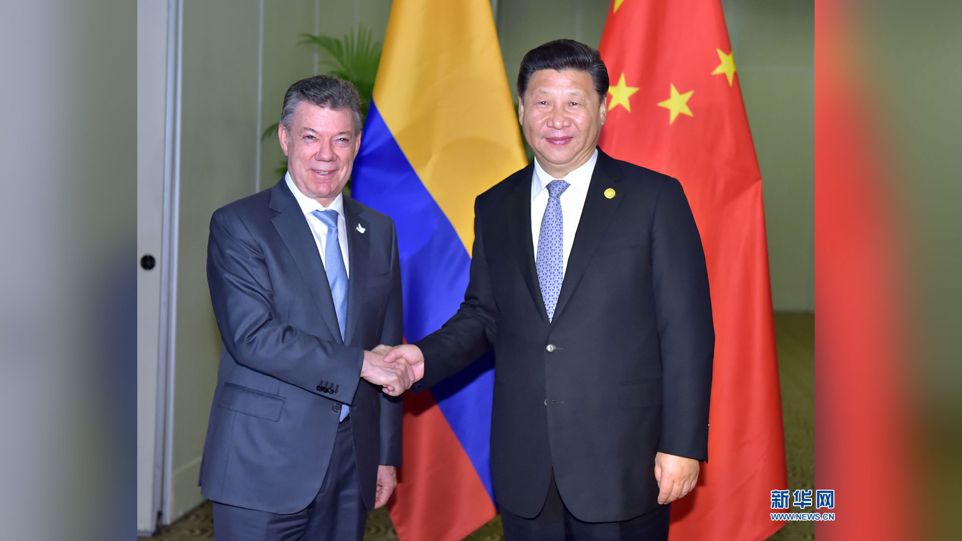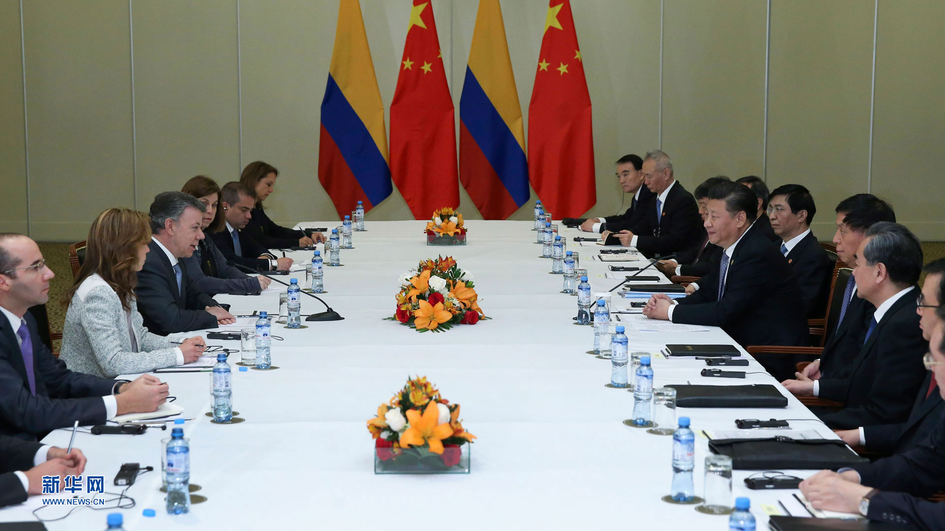 11月19日,國家主席習(xí)近平在利馬會見哥倫比亞總統(tǒng)桑托斯。新華社記者 李濤 攝2016-11-20