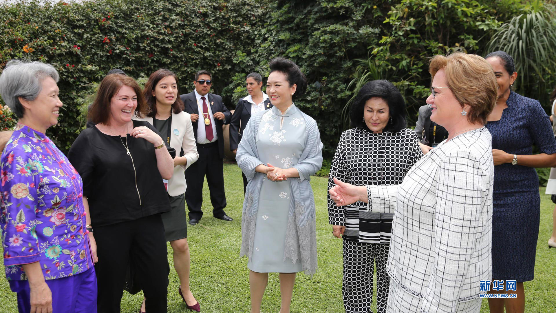 11月21日,國家主席習(xí)近平夫人彭麗媛在利馬參觀若望二十三世秘中學(xué)校。 新華社記者丁林?jǐn)z2016-11-22